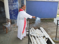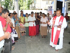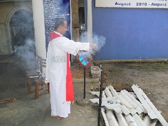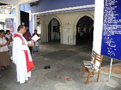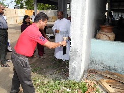 Thursday, 9th of February 2012 Construction work of the Queen Of Angels' Church Facade was started after Prayer and Blessings. Rev. Fr. Tyronne Perera (Parish Priest) symbolically started the demolition of the existing Facade. Large number of Parishioners were present in Prayer as the event took place.